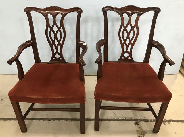 678 Pair of Antique Reproduction Cherry Arm Chairs
