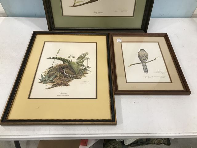 Three Ray Harm Signed Lithographs, Tufted Tilmouse, Ovenbird, Cooper's Hawk, pencil signed, framed, largest is 26"h., 22"w. Three Ray Harm Signed Lithographs, Tufted Tilmouse, Ovenbird, Cooper's Hawk, pencil signed, framed, largest is 26"h., 22"w.