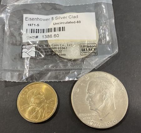 1971-S Eisenhower Silver Chad, uncirculated 60, 1776-1976 Eisenhower, and Sacagawea dollar 1971-S Eisenhower Silver Chad, uncirculated 60, 1776-1976 Eisenhower, and Sacagawea dollar
