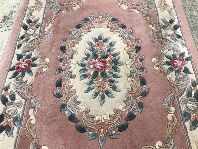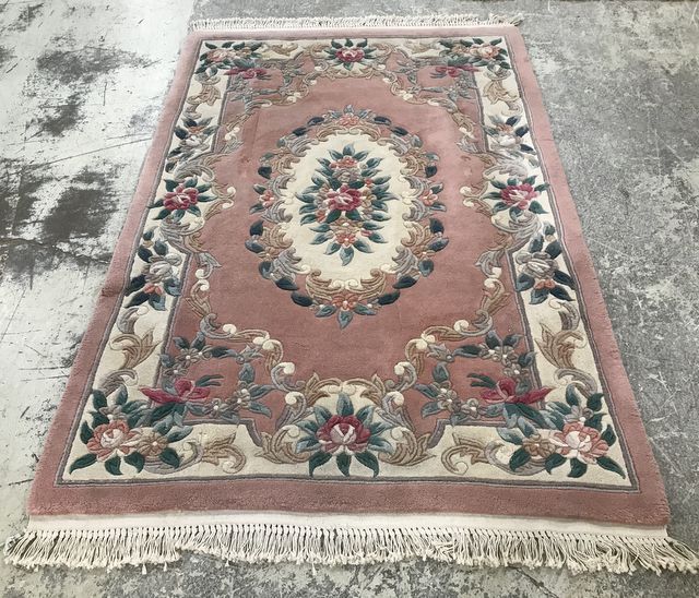 High Pile Wool Pink Area Rug, Chinese, good condition, 4' x 6'7. Color will appear lighter in the photo. High Pile Wool Pink Area Rug, Chinese, good condition, 4' x 6'7. Color will appear lighter in the photo.
