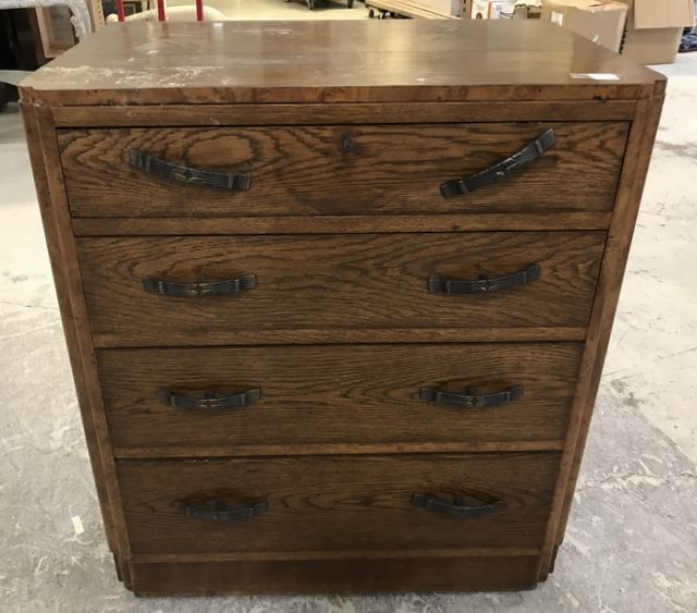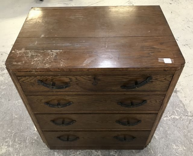 Vintage Oak Bachelor's Chest, four drawers, has finish wear, on casters, 31"h., 27"w., 18"d. Vintage Oak Bachelor's Chest, four drawers, has finish wear, on casters, 31"h., 27"w., 18"d.
