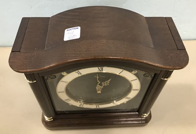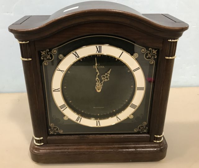 Bulova Cherry Mantle Clock, Westminster, battery operated, 11"h Bulova Cherry Mantle Clock, Westminster, battery operated, 11"h
