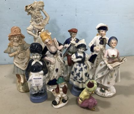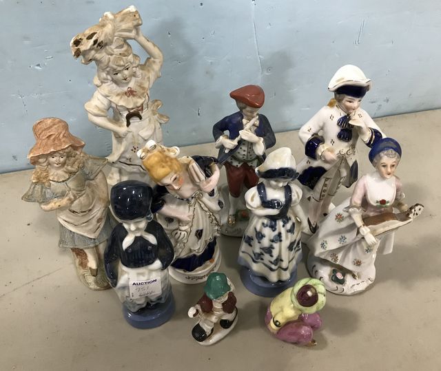 Group of Occupied Japan Figurines, hand painted, European, 8 total, 7"h. Group of Occupied Japan Figurines, hand painted, European, 8 total, 7"h.