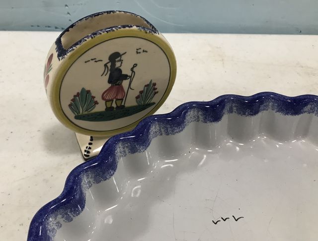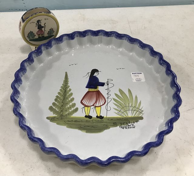 Emily Henry France Pottery Round Dish, hand painted girl by HB. Henriot, Quimper, France, crimped rim, 12"dia. Emily Henry France Pottery Round Dish, hand painted girl by HB. Henriot, Quimper, France, crimped rim, 12"dia.