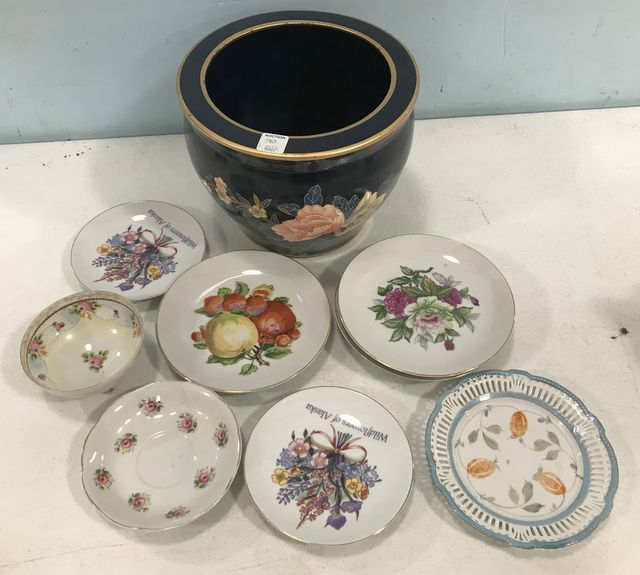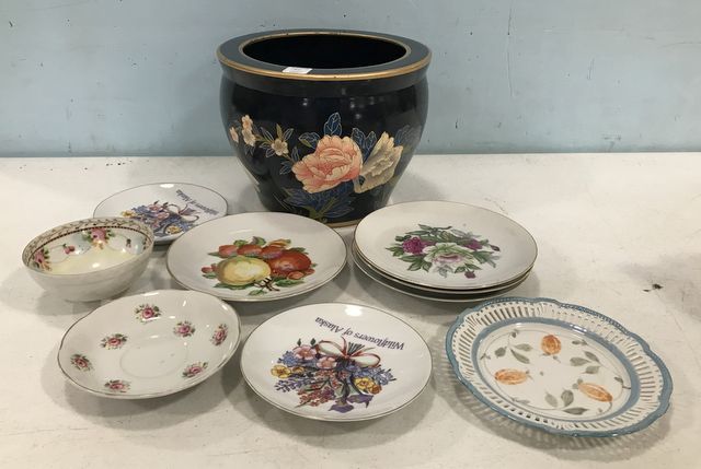 780 Modern Blue Pottery Planter and Collection of Porcelain Plates
