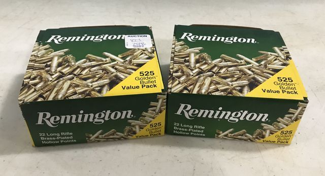 Three Remington 22 Long Rifle Brass Plated Hollow Points, 1575 cartridges. Three Remington 22 Long Rifle Brass Plated Hollow Points, 1575 cartridges.