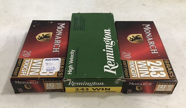 Tw Monarch .243 Win and Remington 243 Win, 60 cartridges. Tw Monarch .243 Win and Remington 243 Win, 60 cartridges.