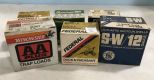 Six Boxes of shotgun shells, Winchester AA Plus 12 gauge 3", Federal 20 gauge 2 3/4, Remington Dove 20 gauge 2 3/4, Federal Duck 20 gauge 2 3/4, S&W 12 gauge 2 3/4, only 3 boxes are full, other are partial. Six Boxes of shotgun shells, Winchester AA Plus 12 gauge 3", Federal 20 gauge 2 3/4, Remington Dove 20 gauge 2 3/4, Federal Duck 20 gauge 2 3/4, S&W 12 gauge 2 3/4, only 3 boxes are full, other are partial.
