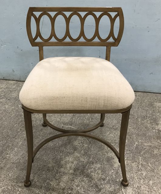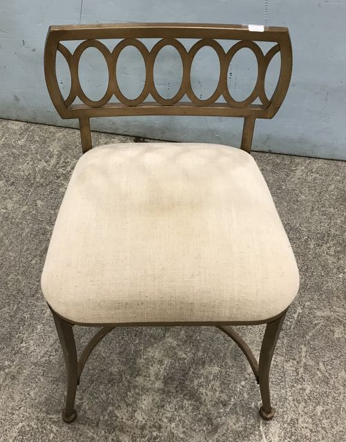 Modern Gold Color Vanity Chair, white upholstered seat, 26"h. Modern Gold Color Vanity Chair, white upholstered seat, 26"h.