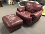 866 Burgundy Leather Over Sized Chair and Ottoman