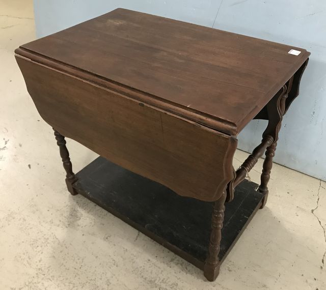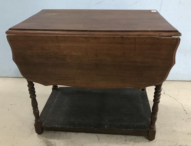 Vintage Drop Leaf Side Table, converted from tea cart, has age wear, 23"h., 26"w. Vintage Drop Leaf Side Table, converted from tea cart, has age wear, 23"h., 26"w.