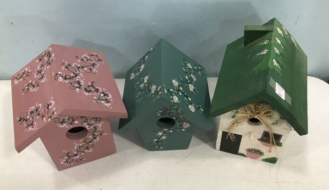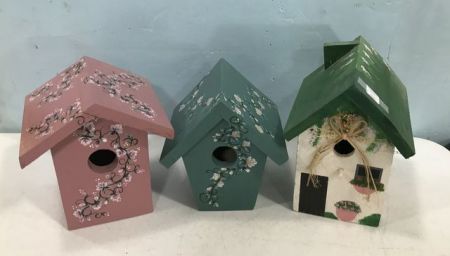 900 Three Hand Painted Wood Bird Houses