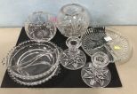 940 Candlewick Two Part Bowls, Cut Glass Candle Sticks, Divided Dish, and Two Vases