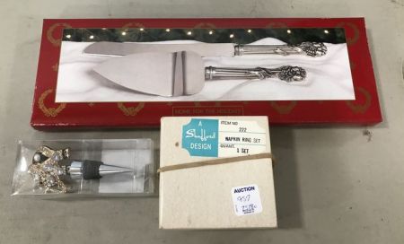 957 Home for the Holidays Desert Set, Elephant Wine Stopper, Shafford Porcelain Napkin Ring Set