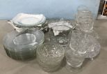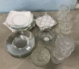 Assorted Groups of clear glass 8" plates, apple luncheon plates, pressed glass cups, berry bowls, heavy glass bowl. Assorted Groups of clear glass 8" plates, apple luncheon plates, pressed glass cups, berry bowls, heavy glass bowl.