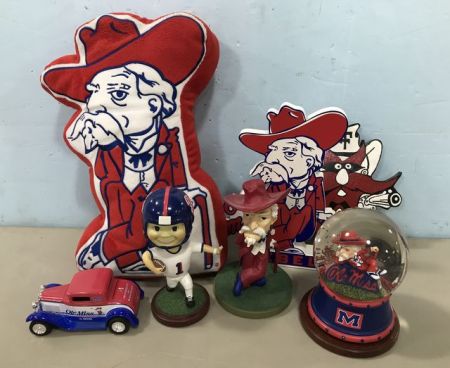 Ole Miss Colonel Reb Memorabilia, pillow, plaque, old car, bobble head, snow globe. Ole Miss Colonel Reb Memorabilia, pillow, plaque, old car, bobble head, snow globe.