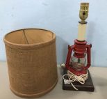 Winged Wheel Red Lantern Lamp, wood base, made in Japan, 14"h. Winged Wheel Red Lantern Lamp, wood base, made in Japan, 14"h.