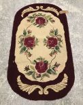 Maroon hook rug, rose pattern, needs cleaning, 2' x 3'7. Color will appear lighter in the photo. Maroon hook rug, rose pattern, needs cleaning, 2' x 3'7. Color will appear lighter in the photo.