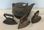 Primitive number 8 pitcher, number 6 press irons, age condition. Primitive number 8 pitcher, number 6 press irons, age condition.