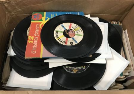1147 Box Lot of 7" Vinyl Records 1950's-1970s