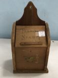 Wood Hanging Letter box, lift top, with carved eagle emblem, has wear, 12"h. Wood Hanging Letter box, lift top, with carved eagle emblem, has wear, 12"h.