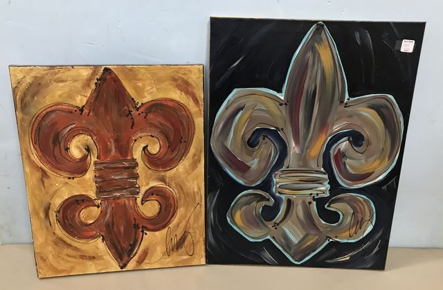 Two Fleur De Lis Paintings on Canvas, largest is 24"h., 18"w. Two Fleur De Lis Paintings on Canvas, largest is 24"h., 18"w.