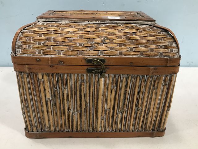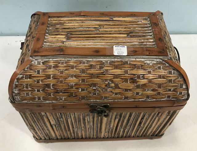 Decorative Woven Style Storage Box, with handles, 11"h., 14"w. Decorative Woven Style Storage Box, with handles, 11"h., 14"w.