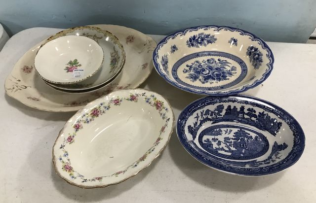 Assorted Collection of Porcelain platters and bowls, blue and white bowls, platters. Assorted Collection of Porcelain platters and bowls, blue and white bowls, platters.