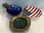 1219 Decorative Glass Bowls, Hanging Art Glass, Mosaic Bowl and Ceramic American Flag Bowl