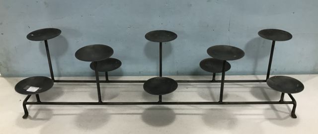 Metal candle display stand, decorative, 10 holders, 32"w. Metal candle display stand, decorative, 10 holders, 32"w.