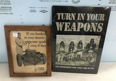 1240 Champion Advertisement Poster and Metal Turn in Your Weapons Sign