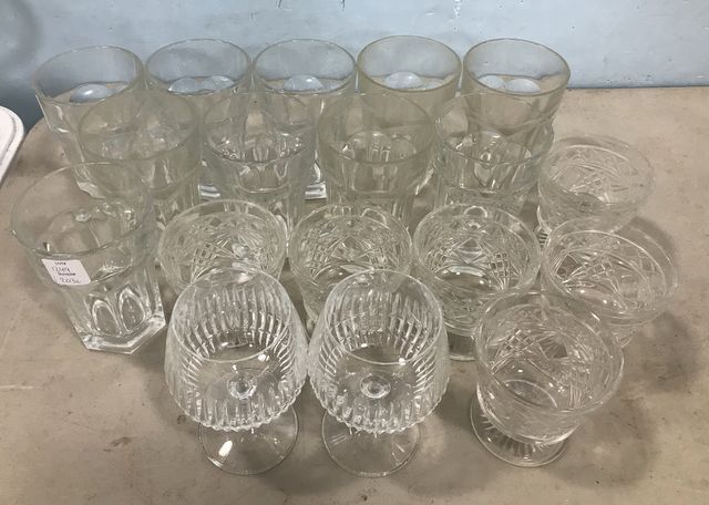 Two Crystal Brandy Stems, ice tea glasses, sherbets, pressed glassed, clear glass, used condition. Two Crystal Brandy Stems, ice tea glasses, sherbets, pressed glassed, clear glass, used condition.