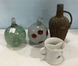 1254 Two Art Glass Decor, Woven Jug, and Mustache Cup