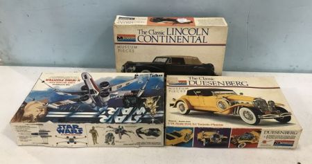 Lincoln Continental, Classic Duesenberg, Star Wars, in original boxes. Lincoln Continental, Classic Duesenberg, Star Wars, in original boxes.