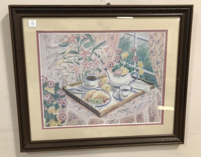 Still Life Watercolor Print, matted, framed, 22"h., 25"w. Still Life Watercolor Print, matted, framed, 22"h., 25"w.