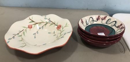 1279 Gail Pittman Serving Bowl and "Grapevine Red" Bowls
