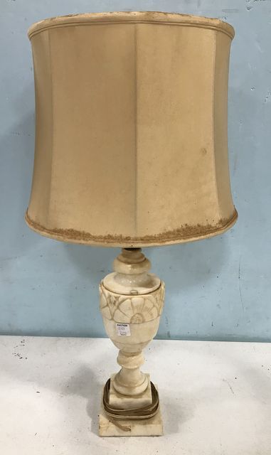 Vintage Alabaster urn table lamp, needs new shade, 28"h. Vintage Alabaster urn table lamp, needs new shade, 28"h.