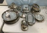 Group of Silver Plate serving piece, covered vegetable dish, broken handle, oval bowls, trivets, butter dish, round trays. Group of Silver Plate serving piece, covered vegetable dish, broken handle, oval bowls, trivets, butter dish, round trays.