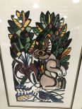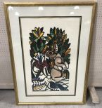 Large Walter Anderson Rabbit-Doe Hand Colored Print, printed black and white then hand watercolor, matted, glassed, gold gilt frame, 52"h., 38"w. Large Walter Anderson Rabbit-Doe Hand Colored Print, printed black and white then hand watercolor, matted, glassed, gold gilt frame, 52"h., 38"w.