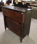 Antique Empire Style Chest of Drawers, ornate crest, four drawers, mahogany, top has wear, has weak back leg, 53"h., 44"w., 21"d. Antique Empire Style Chest of Drawers, ornate crest, four drawers, mahogany, top has wear, has weak back leg, 53"h., 44"w., 21"d.