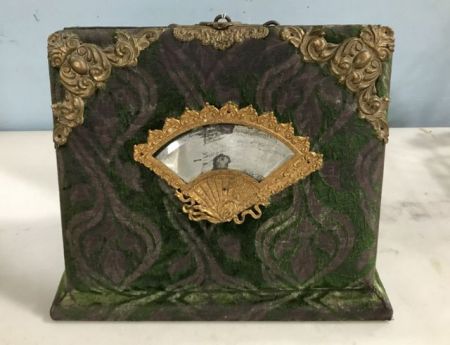 Antique Victorian Photo Album With Secret Writing Desk and ink well, Green Velvet album with fancy hardware, opens in the back behind photos to reveal secret desk set with inkwell, has approx. 40 photos. Antique Victorian Photo Album With Secret Writing Desk and ink well, Green Velvet album with fancy hardware, opens in the back behind photos to reveal secret desk set with inkwell, has approx. 40 photos.
