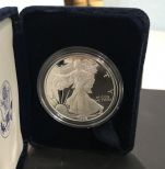 1999 Silver American Eagle One Dollar Coin, Philadelphia Mint, 99.9%, 1.00 ozt, in case. 1999 Silver American Eagle One Dollar Coin, Philadelphia Mint, 99.9%, 1.00 ozt, in case.
