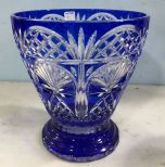 261 Cobalt Blue Cut to Clear Glass Center Piece Vase