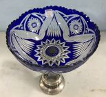262 Cobalt Blue Cut to Clear Glass Center Piece Compote