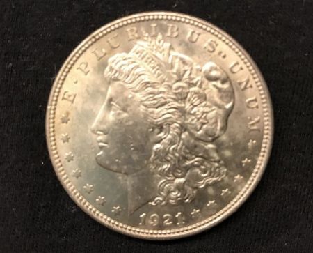 1921 Morgan Silver Dollar, unmarked, fine condition. 1921 Morgan Silver Dollar, unmarked, fine condition.