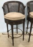Pair of French Provincial Style Bar Stools, cushion seat, cane back, brass foot rest, seat do swivel, has finish wear, 41"h., 29 1/2" seat to ground. Pair of French Provincial Style Bar Stools, cushion seat, cane back, brass foot rest, seat do swivel, has finish wear, 41"h., 29 1/2" seat to ground.