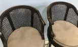 Pair of French Provincial Style Bar Stools, cushion seat, cane back, brass foot rest, seat do swivel, has finish wear, 41"h., 29 1/2" seat to ground. Pair of French Provincial Style Bar Stools, cushion seat, cane back, brass foot rest, seat do swivel, has finish wear, 41"h., 29 1/2" seat to ground.