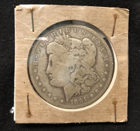 1891 Morgan Silver Dollar, marked O, good condition. 1891 Morgan Silver Dollar, marked O, good condition.
