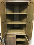 Large Primitive Style Pine Corner Cabinet, double doors, shelves, good condition thou needs wedges to level front, 81"h., 44"w., 21"d. Large Primitive Style Pine Corner Cabinet, double doors, shelves, good condition thou needs wedges to level front, 81"h., 44"w., 21"d.