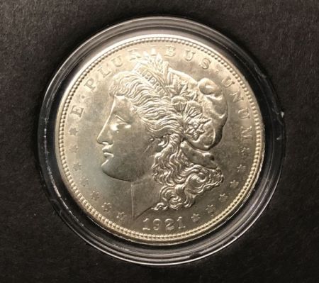 1921 Morgan Silver Dollar, marked D, fine condition. 1921 Morgan Silver Dollar, marked D, fine condition.